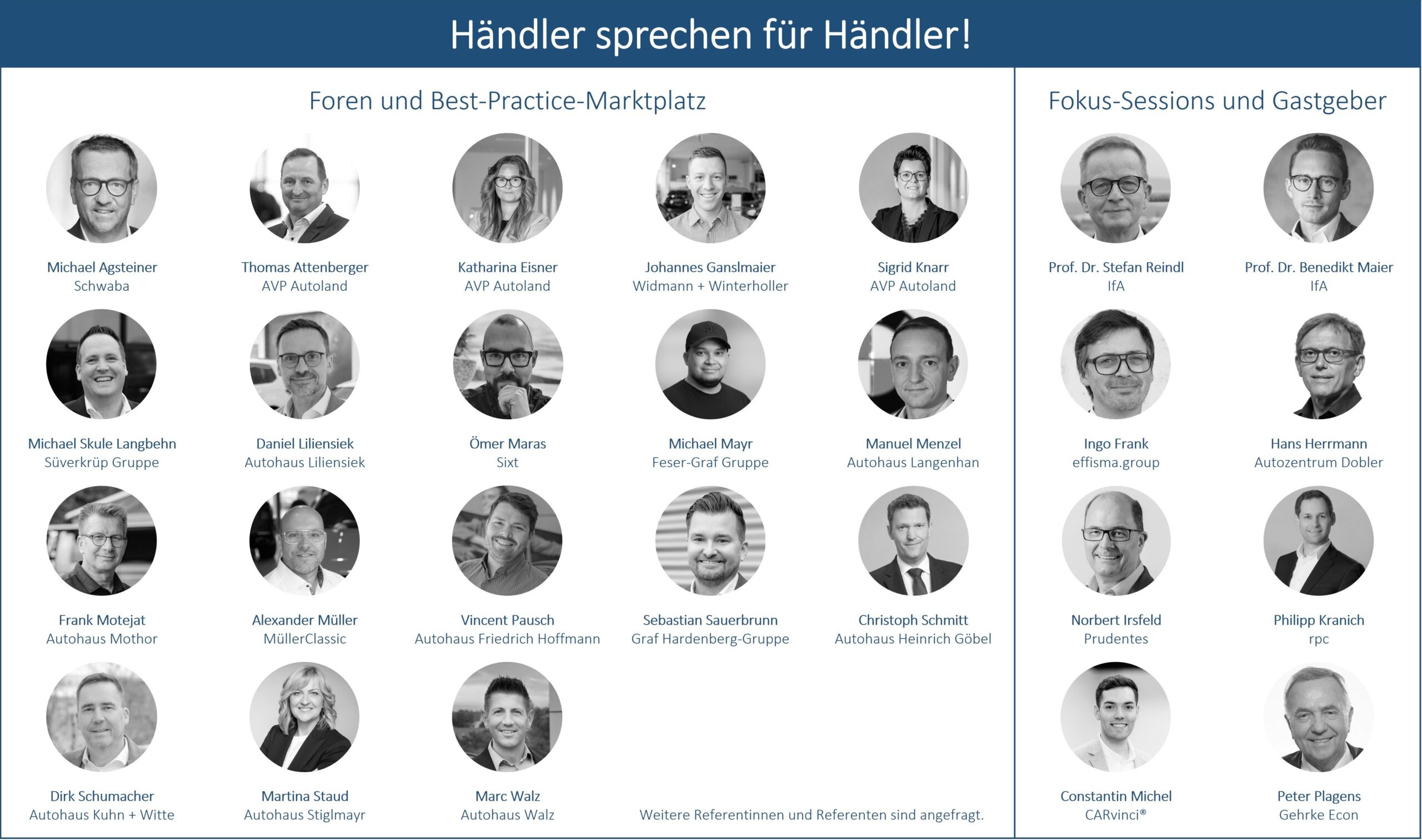 Der IfA Autohausgipfel bietet Entscheiderinnen und Entscheidern aus Autohäusern und Handelsgruppen eine einmalige Plattform der Information, des Austausches und der Vernetzung. In den Foren und auf dem Best-Practice-Marktplatz berichten und diskutieren ausschließlich Vertreterinnen und Vertreter aus Autohausunternehmen über ihren Umgang mit aktuellen Herausforderungen. Unser Motto lautet „Händler sprechen für Händler“. Dies gewährleistet einen einmaligen Praxisbezug und ermöglicht den Teilnehmenden einen Austausch auf Augenhöhe. Der IfA Autohausgipfel leistet damit einen Beitrag, die Geschäftsmodelle, Leistungsangebote und Prozesse der Autohäuser fit für die Zukunft zu machen. An zwei Veranstaltungstagen werden verschiedene Schwerpunkte gesetzt: